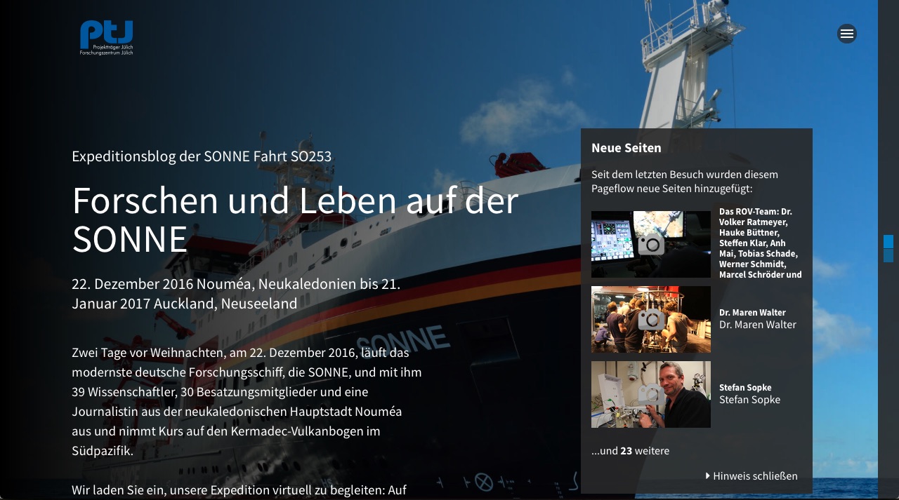 Pageflow wurde um ein neues Feature ergänzt, das für Geschichten gedacht ist, die mit der Zeit wachsen. So wie es beispielsweise bei Berichterstattungen von Events, oder Reiseberichten mit Tagebuch-Charakter der Fall sein kann.